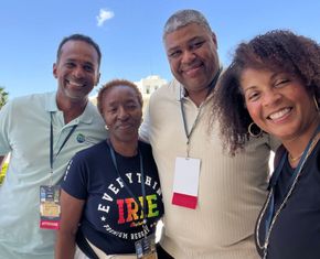 - VIP music festival seating and backstage group photo with A.J. Brown of Third World Band.
